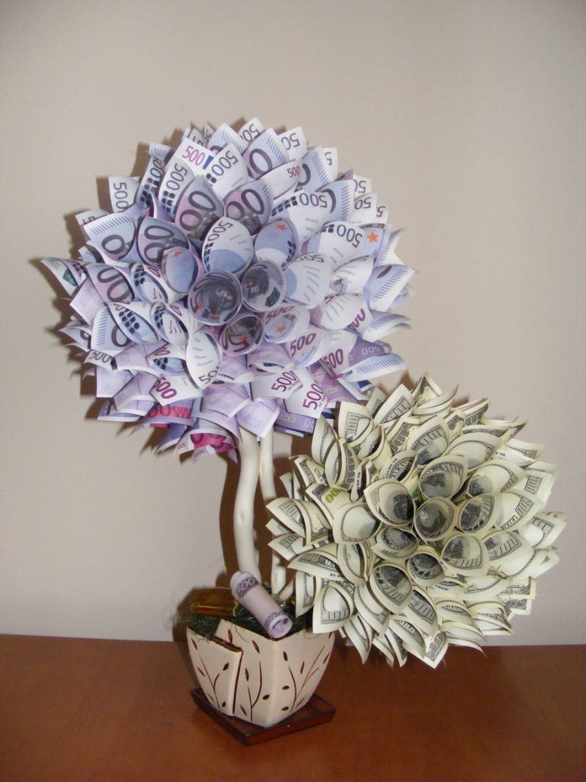 В последние несколько лет представителям сильного пола дарят именно денежный топиарий. Универсальность подарка заключается в том, что подходит он для начальника, друга или мужа. Благодаря своей форме, дерево впишется в интерьер любого помещения без особых проблем. Главное – стилистически правильно его оформить. Для начала необходимо найти нужное количество монеток или купюр.
