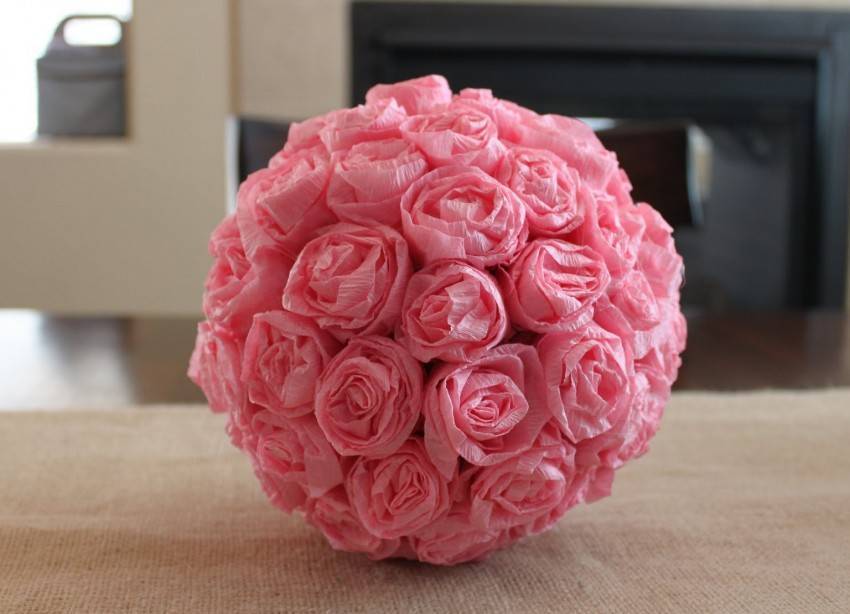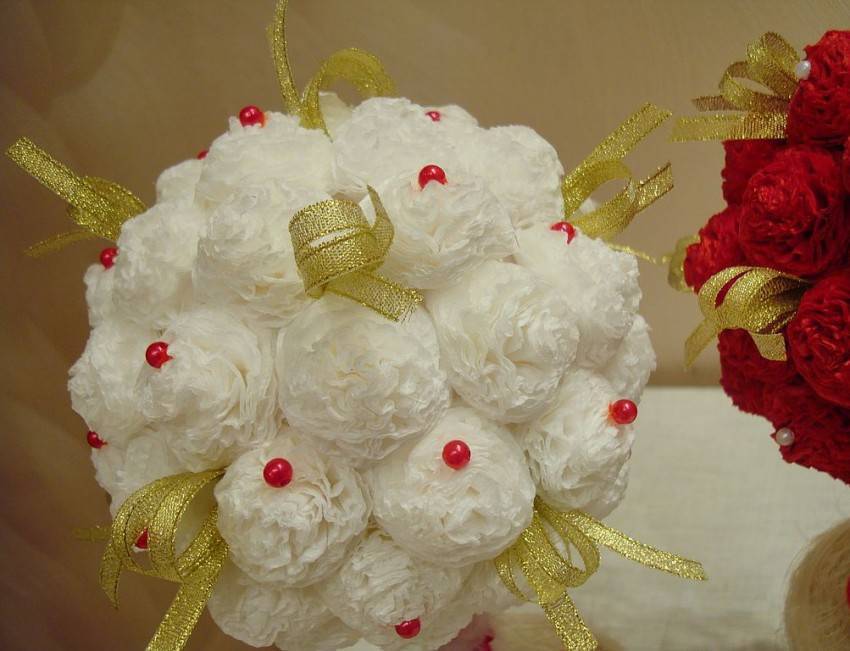 - Создание многочисленных миниатюрных комочков из салфетки и оклеивание этими комочками шара-основы с формирование фактурной кроны.