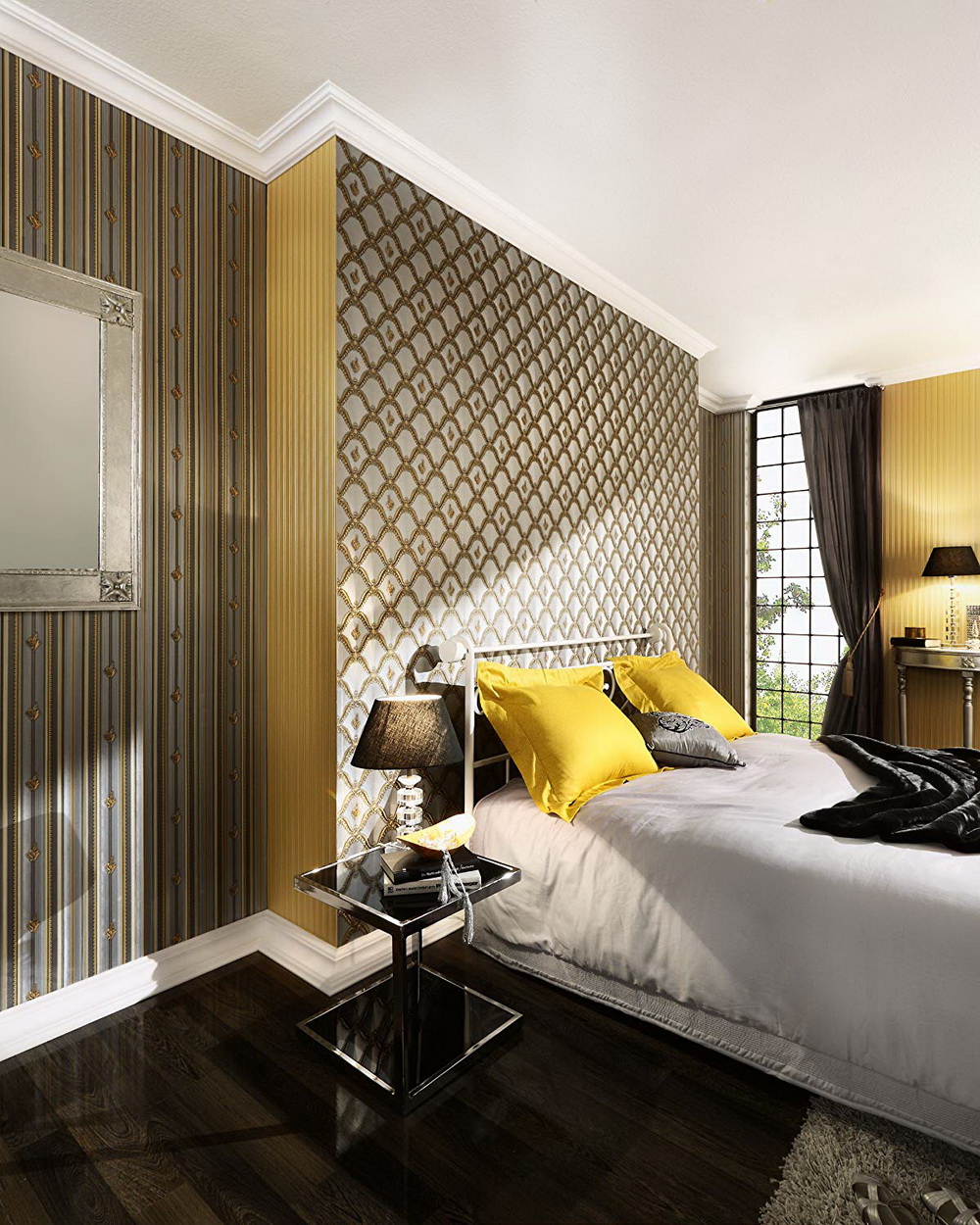 Сегодня многие дорогие материалы успешно имитируют в интерьере спальни красивые обои: