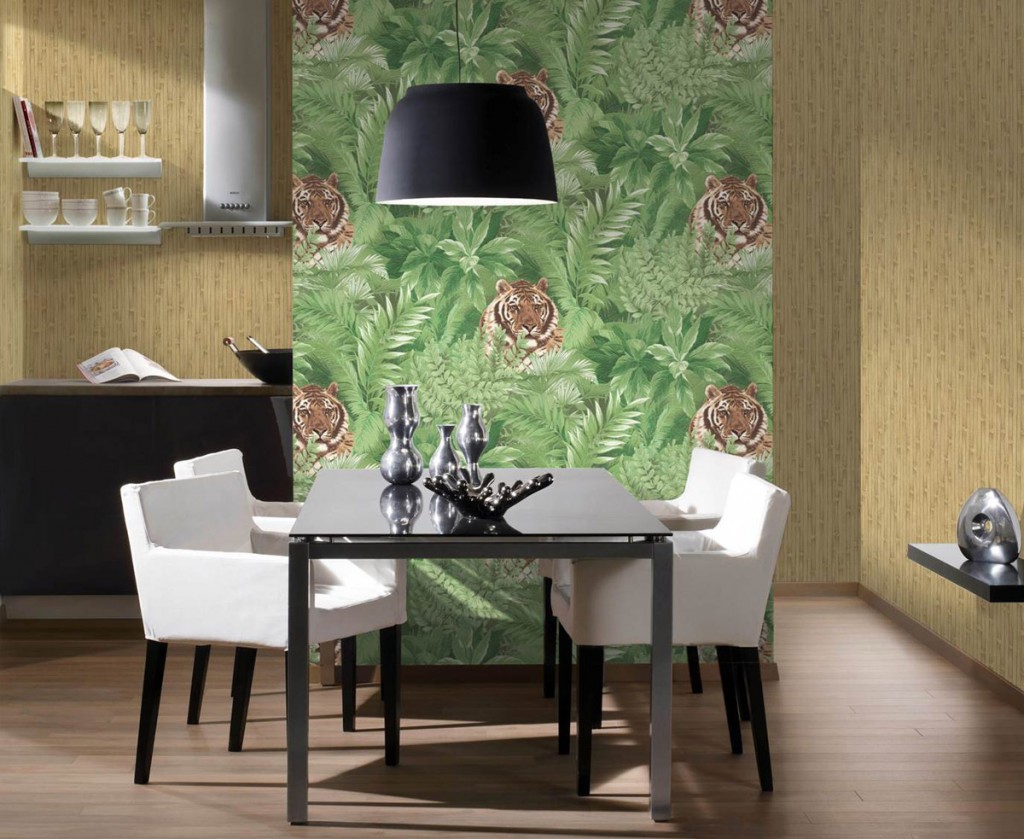 Не стоит клеить их сразу на все стены. Сделайте небольшой красочный акцент — так вы добьетесь оригинального внешнего вида и избежите эффекта перегруженности. Лучше всего размещать такие обои над обеденным столом или напротив него.