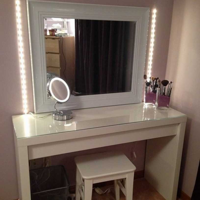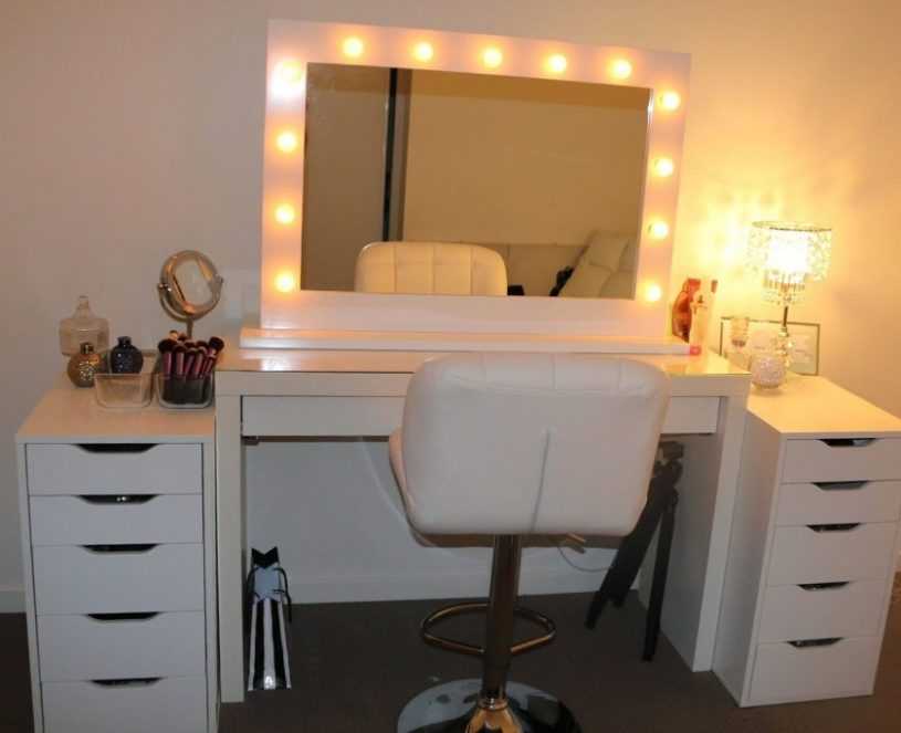 Важно, чтобы между ее коленками и столешницей, боковинами и задней стенкой оставалось не менее 2-3 см пространства, иначе вместо удовольствия от макияжа владелица испытает дискомфорт от необходимости ютиться в тесноте