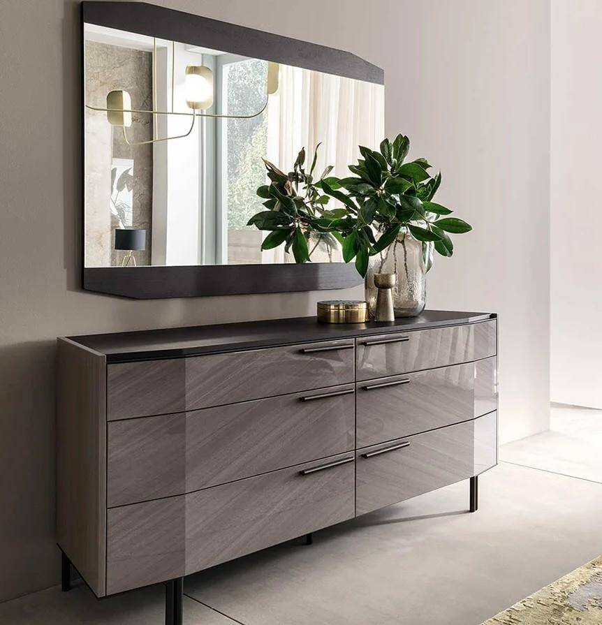 В ящиках можно хранить не только постельное белье или личные вещи, но и косметику, сделав из комода туалетный столик. В ассортименте производителя также есть подходящие шкафы с зеркалами и без, модульные стенки, кровати и тумбы, чтобы можно было собрать полный гарнитур.