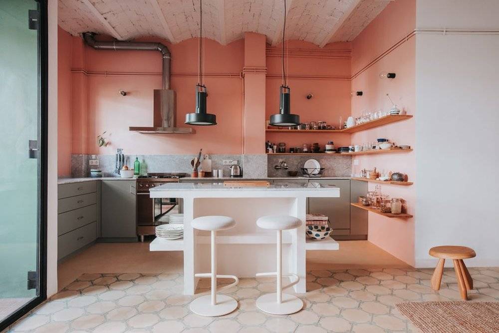 Однако, если коралловые стены это слишком для вас, и вы боитесь, что цвет может быстро надоесть, введите его как цвет одного или двух предметов мебели — деревянного стола, шкафа или стульев. Если у вас есть кухонный остров, вы можете сделать его центральной частью композиции.