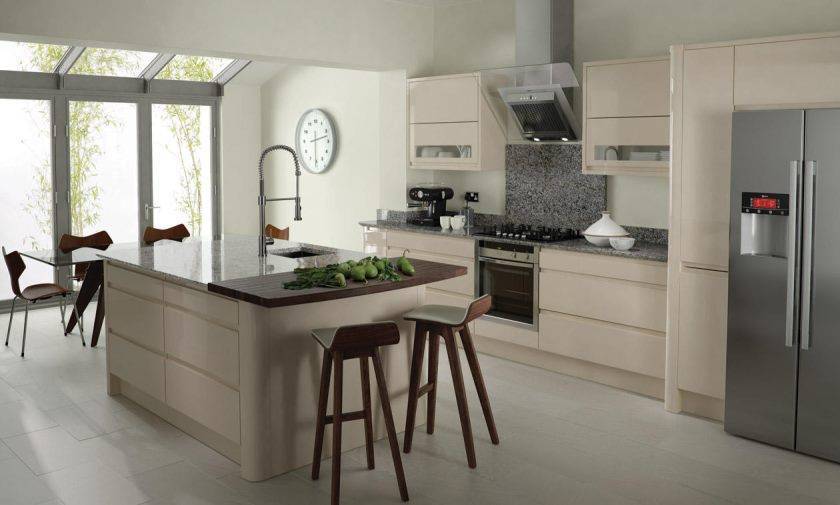 Но если бело-коричневая кухня вам не по душе, то обратите внимание на такой же светлый, но более теплый и мягкий оттенок ванили