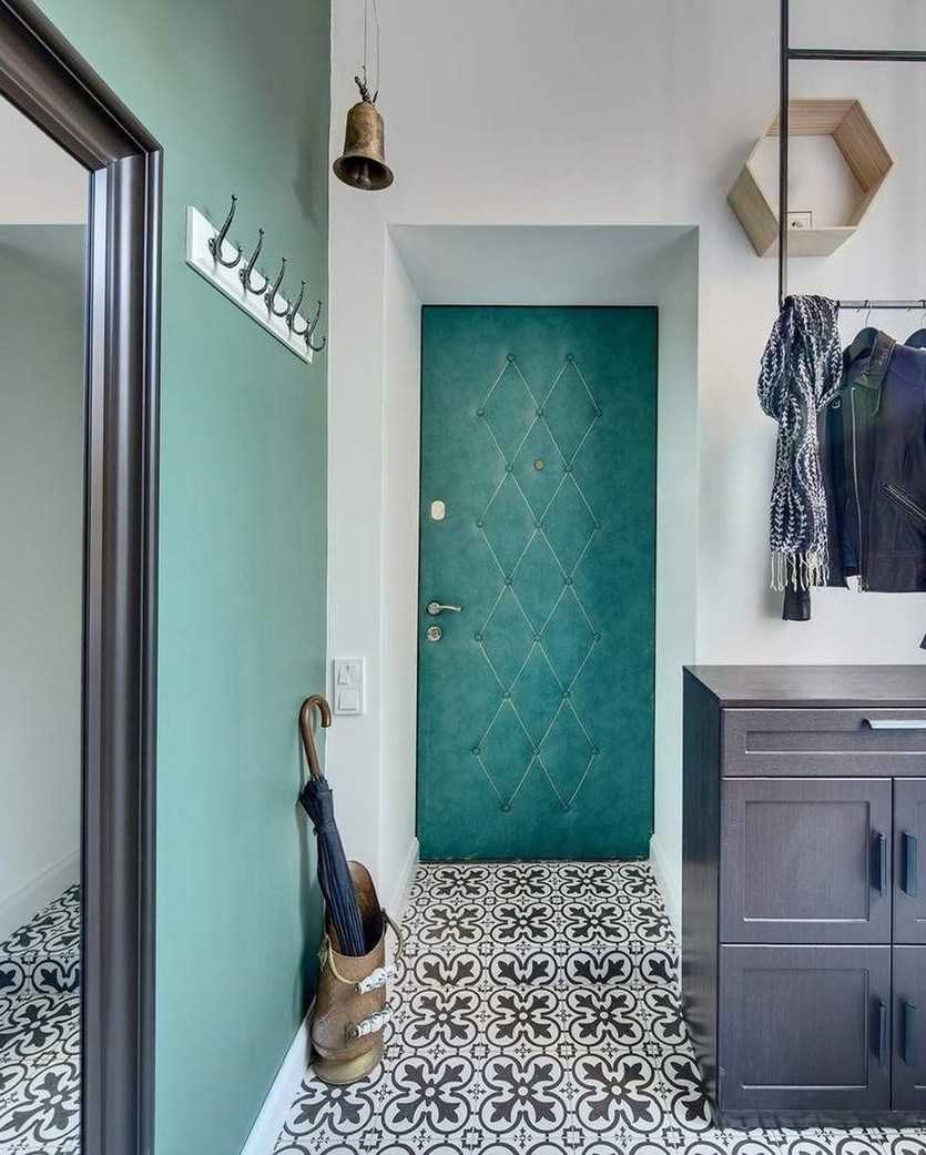 - Поскольку площадь хрущевской прихожей не позволяет поставить диванчик или пуф, его можно заменить невысокой тумбой, в которой будут храниться вещи и аксессуары;