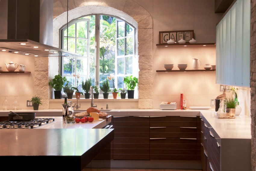 Это важно сделать для того, чтобы не превратить подоконник в место скопления ненужного хлама, портящего общую картину кухонного интерьера.