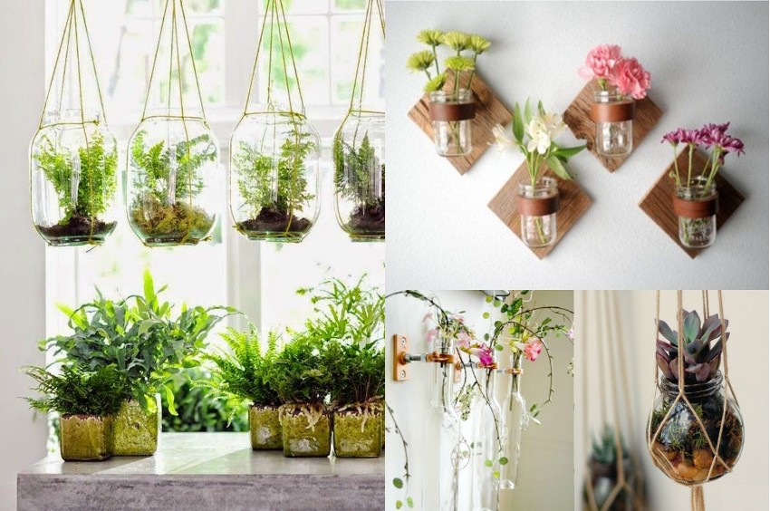 Подвесные вазоны с живыми цветами придадут интерьеру кухни оригинальной нотки
