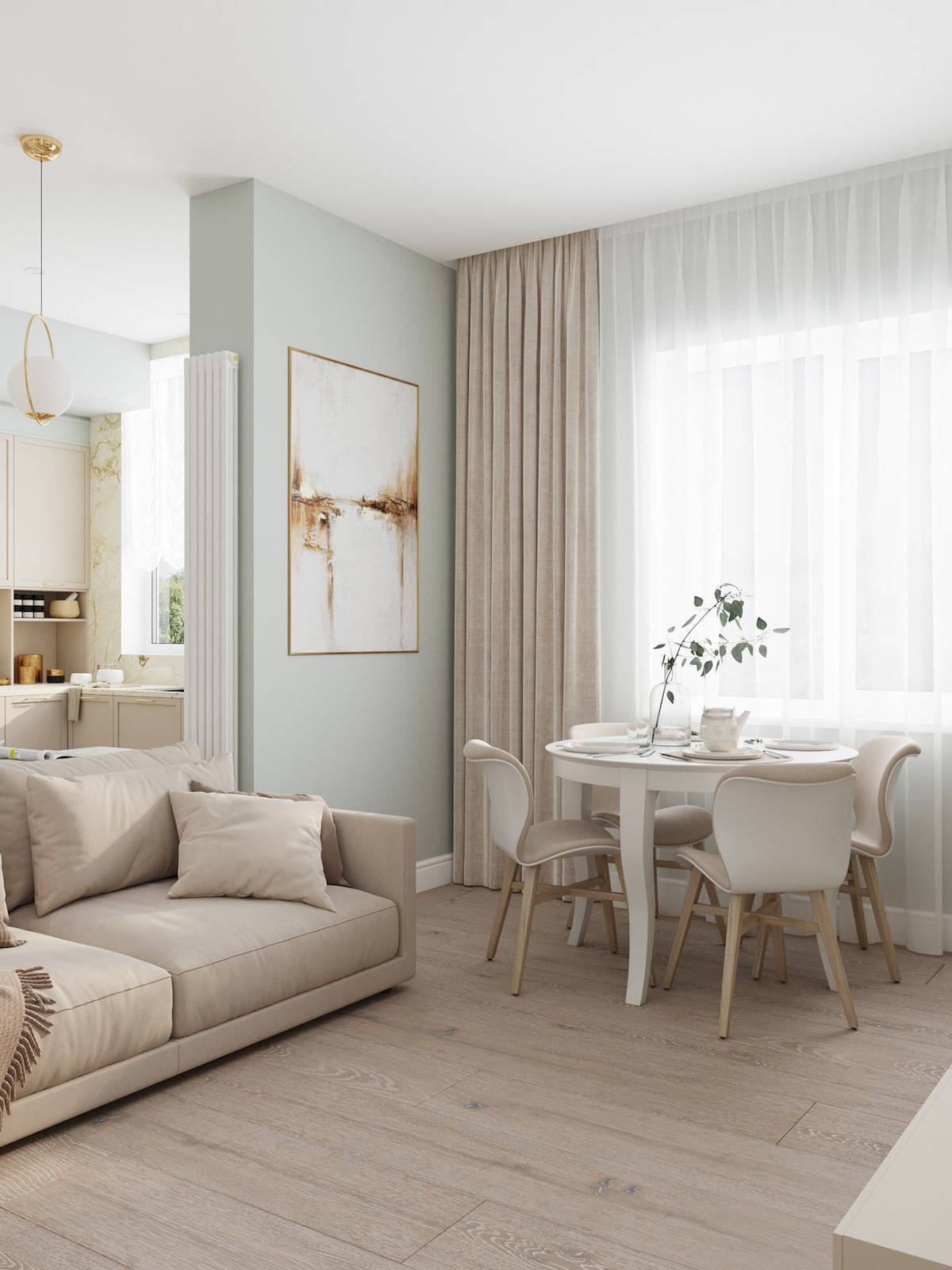При выборе цветовых решений необходимо учитывать особенности всех зон. Для гостиной подойдут коричневый и серый. Кухню лучше сделать белой, а спокойному отдыху в спальне будет благоволить нежный бежевые или оливковый.