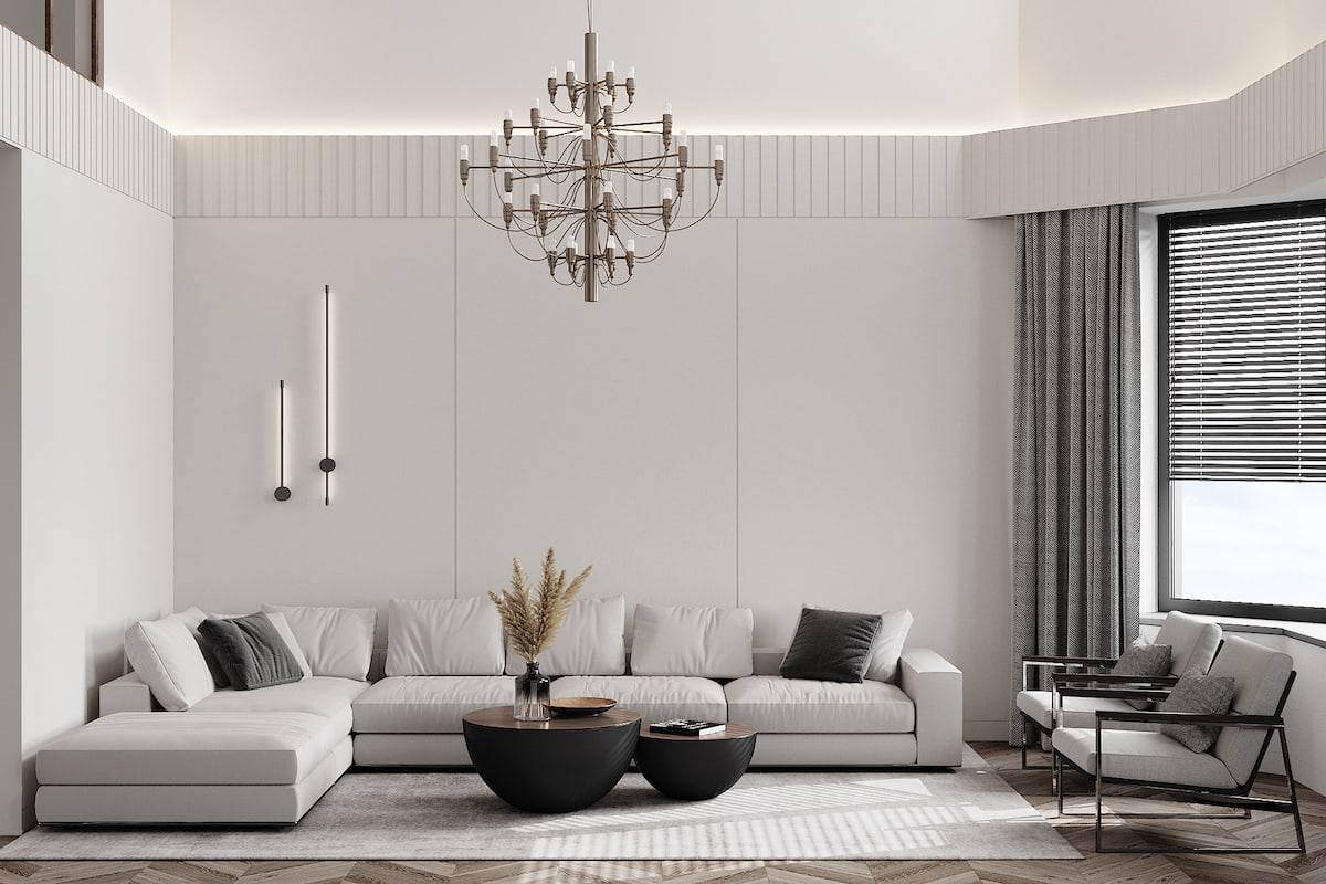 Эти принципы можно применить для любого помещения, но особенно удачно современный стиль смотрится в большой гостиной — именно в ней можно полноценно воплотить идею с зонированием помещения и разместить мебель оригинальной формы.