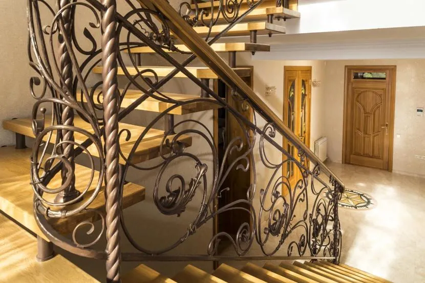 - Потенциальная травмоопасность. Иногда у кованого декора имеются острые грани, способные, при стечении обстоятельств, стать причиной травмы. В доме с детьми стоит внимательнее выбирать дизайн конструкции.
