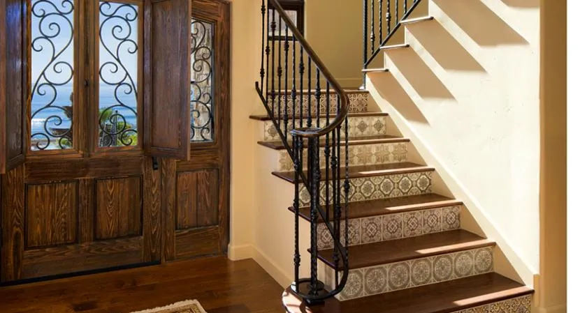 - Готику легко узнать по перилам с чётким геометрическим узором с характерным «стрельчатым» рисунком. Украшения если и есть, то очень скромные.