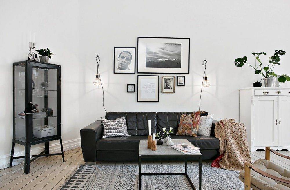 Вы можете добавить мгновенную земную атмосферу на свой черный кожаный диван, украсив его смелыми цветными подушками для броска, и поставив металлические подставки для свечей с матовой отделкой на столе. Еще один совет для яркого пространства в скандинавском стиле — добавить холст или произведение настенного искусства.