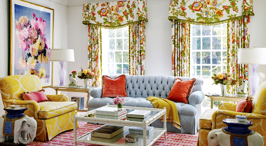 Благодаря широкой цветовой гамме и полотен с узорами можно пошить красочные, авторские шторы, которые будут наполнять комнату уютной атмосферой и вносить нотки праздника.