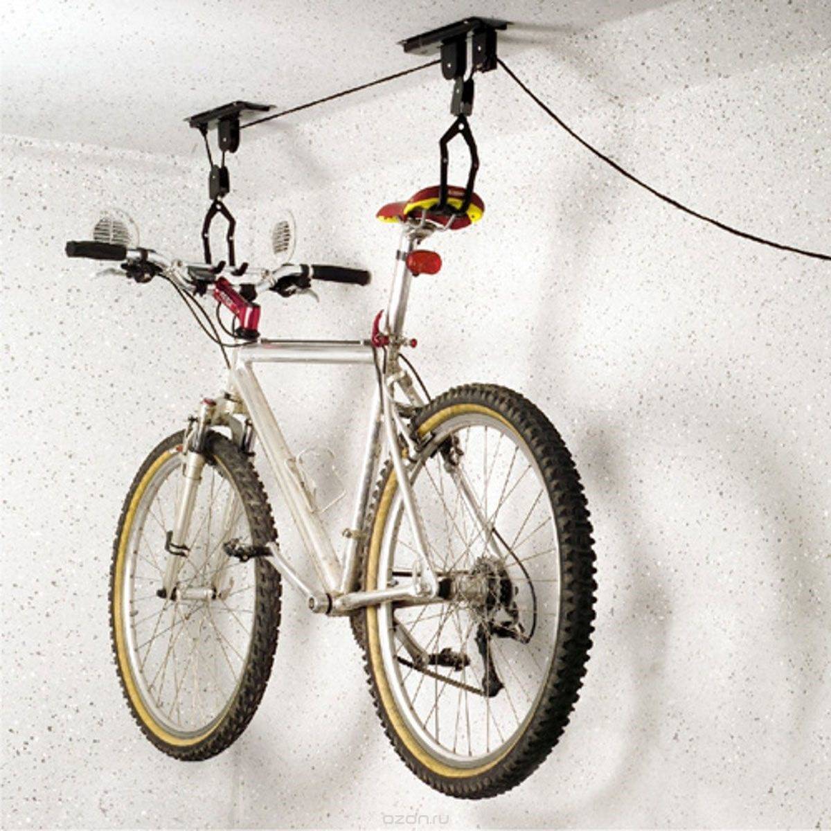 Хранение велосипеда, способом подвешивания к потолку