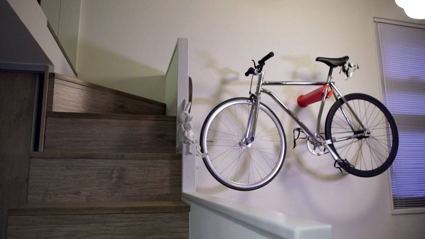 Транспортное средство, стандартно размещенное около стены, будет занимать довольно много пространства. Чтобы не пачкаться, проходя мимо колёс, велосипед необходимо вешать на небольшом расстоянии от пола с помощью крепежа. Такое крепление для велосипеда удобно, даже если в доме их несколько.