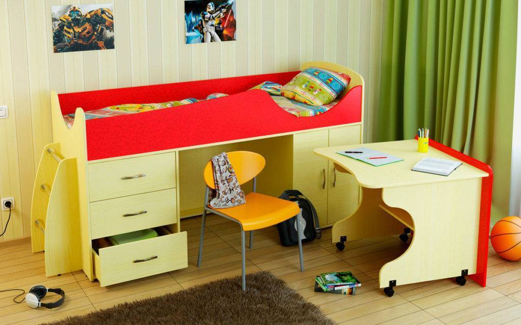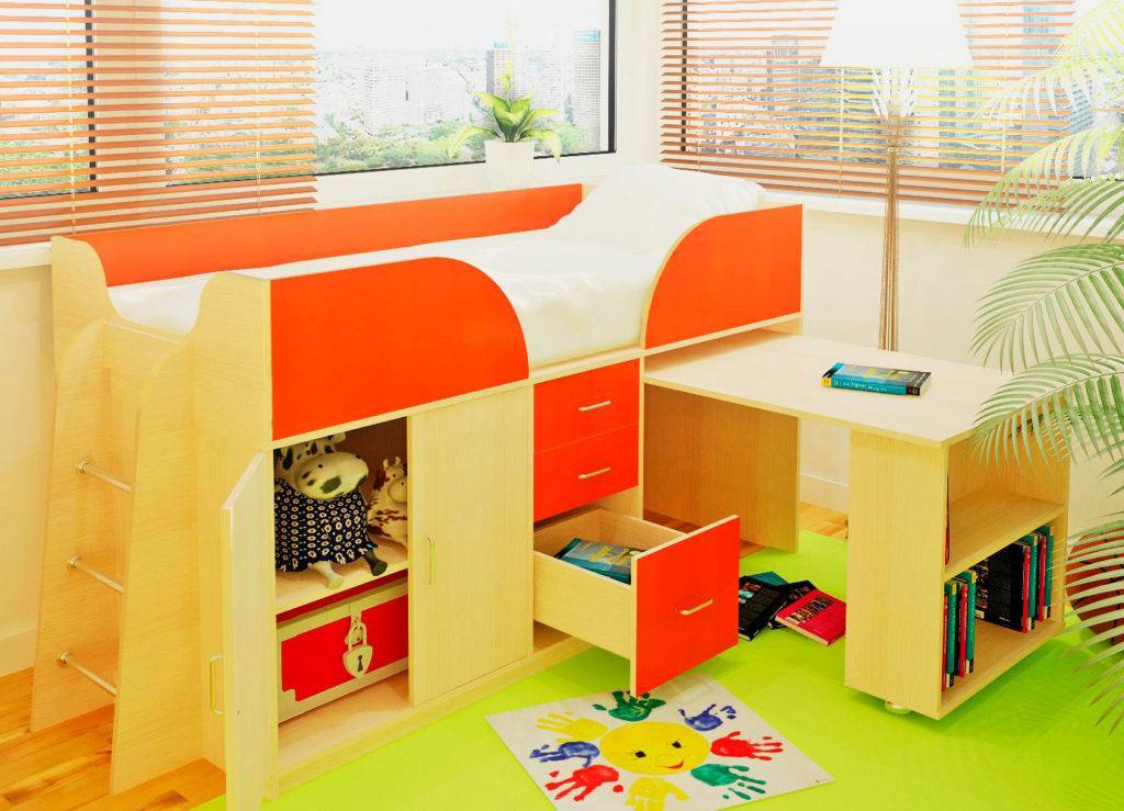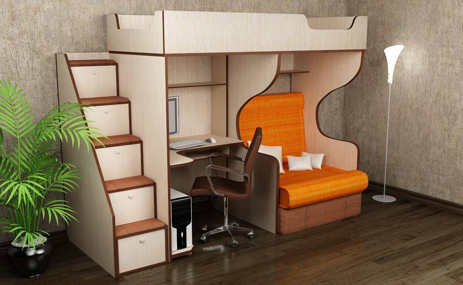 При покупке такого вида мебели уже не придется ломать голову, куда поставить тумбочку или где установить стеллаж. Поднятие спального места на «второй» этаж позволяет и освободить пространство для работы за компьютером, выполнения уроков, игр, занятий спортом и пр.