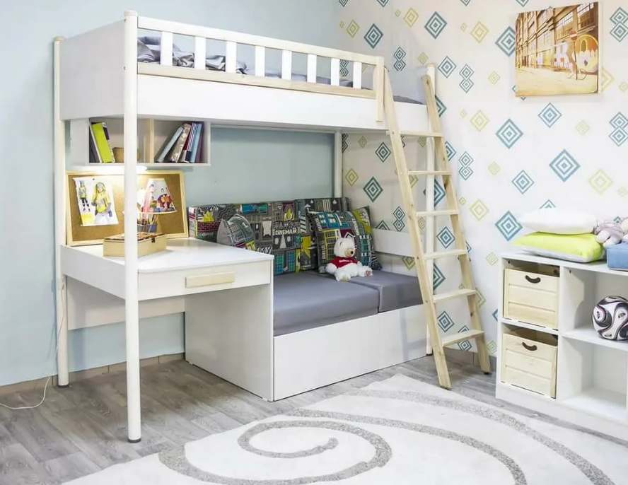 Двухъярусная Кровать с диваном внизу — Стильность и практичность (90+ Фото)