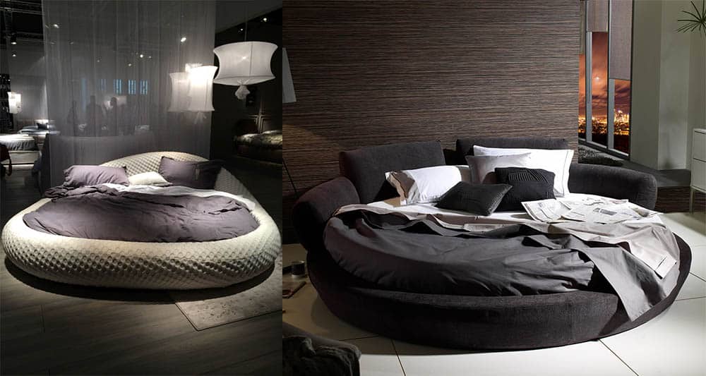 - Круглые кровати выглядят очень современно и могут оформляться в лчбом стиле. Многим нравится это решение не только благодаря оригинальности, но и отсутствию острых углов.