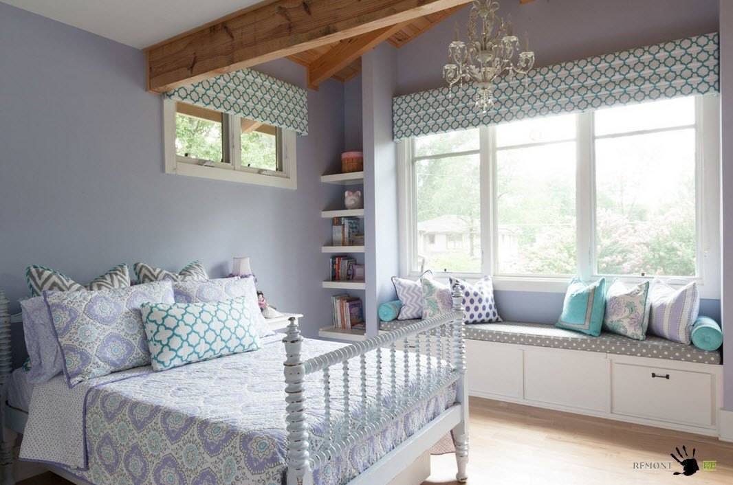 Сочетание нежных красок и древесины, из которой выполнена кровать, создадут в комнате атмосферу свежести и лёгкости