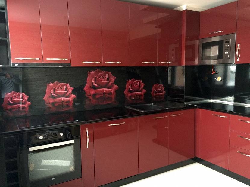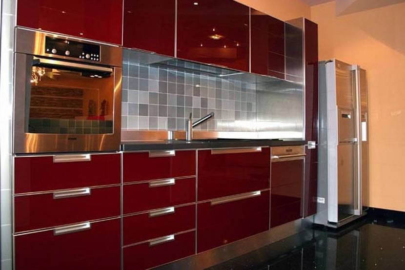 И самое важное здесь — выбрать правильный материал для рабочей поверхности и столешницы. Они должны быть гладкими и глянцевыми. В зависимости от желаемого дизайна можно выбирать любой цвет