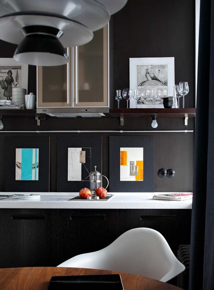 Если нужно отделать кухню-студию, то тут без зонирования не обойтись. И тогда помогают фактуры материалов, цвета, вплоть до контрастных. Так, эффективно работает в интерьере контраст черного и белого цветов.
