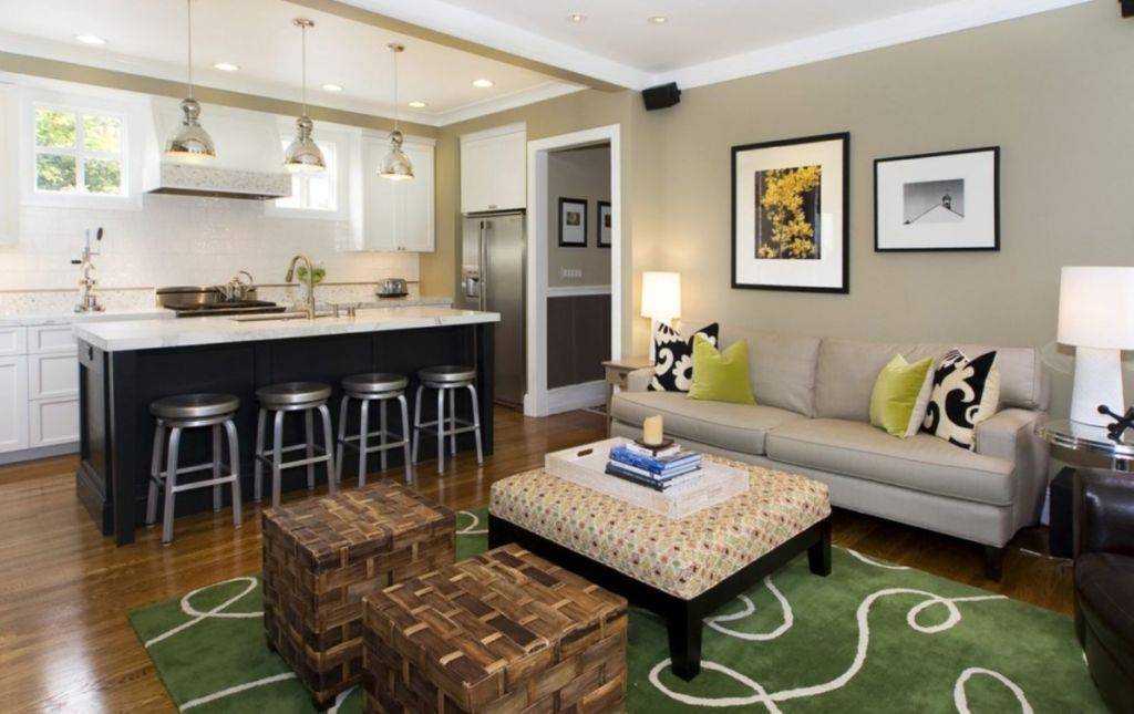 Если не хочется устанавливать перегородки, можно создать границы при помощи цвета или мебельных предметов. Можно выбрать угловой диван или несколько мягких кресел, установленных полукругом. Цветовая палитра не должна создавать резкий контраст между зонами.