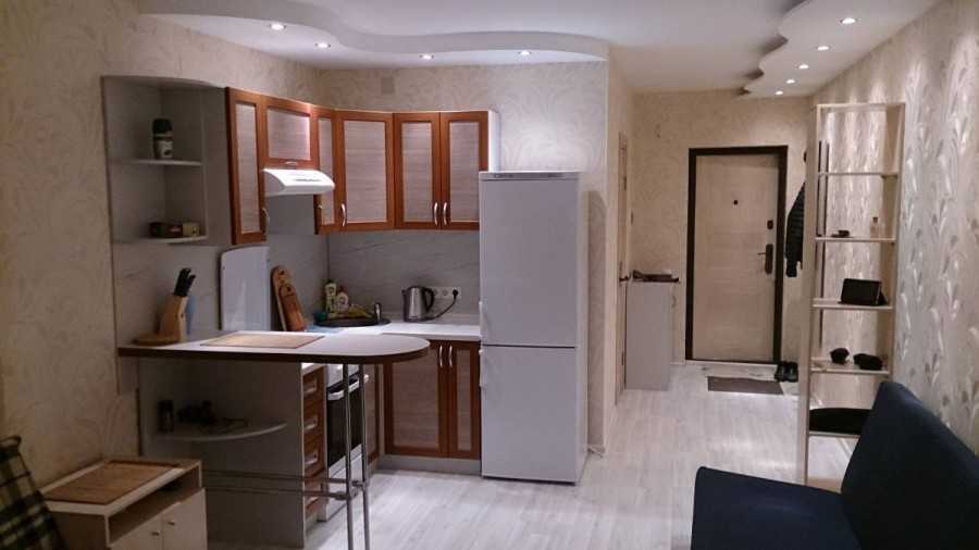 В однокомнатной квартире площадью 18 кв. м трудно представить кухню больших габаритов. Таких в общем-то и не существует. Квартира-студия не предусматривает наличие перегородки между кухней и жилой комнатой. А в обычном варианте жилья для разделения зон можно использовать мобильные стеклянные стены.