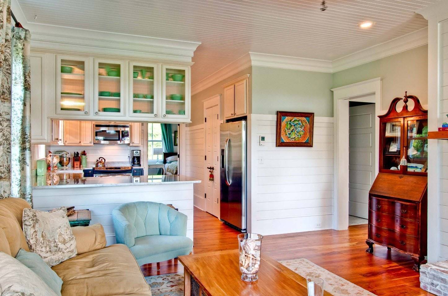 Квартиры с маленькими комнатами также позволяют реализовать подобный проект путем разрушения перегородки между кухней и примыкающим помещением.