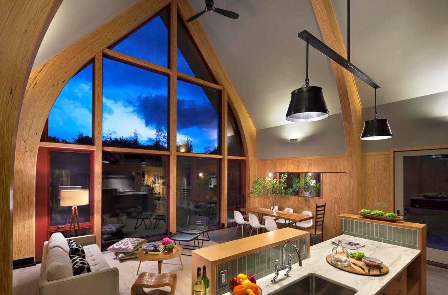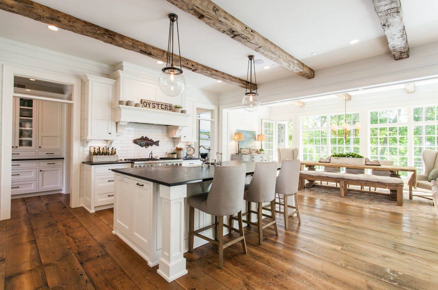 Классическая кухня, совмещенная с гостиной есть и будет находиться вне времени, что подтвердят эти фото.