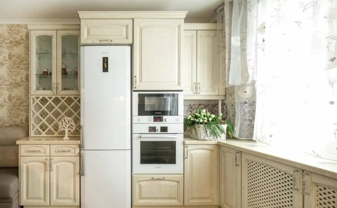 Бело-бежевое оформление наполняет комнату воздушной легкостью и положительно влияет на восприятие пространства, что особенно важно для маленькой кухни