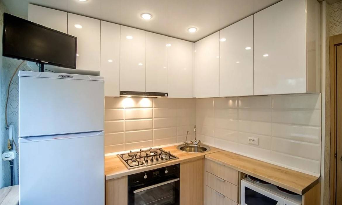 - расширяет пространство — безусловное преимущество на кухнях 5-6 кв м;