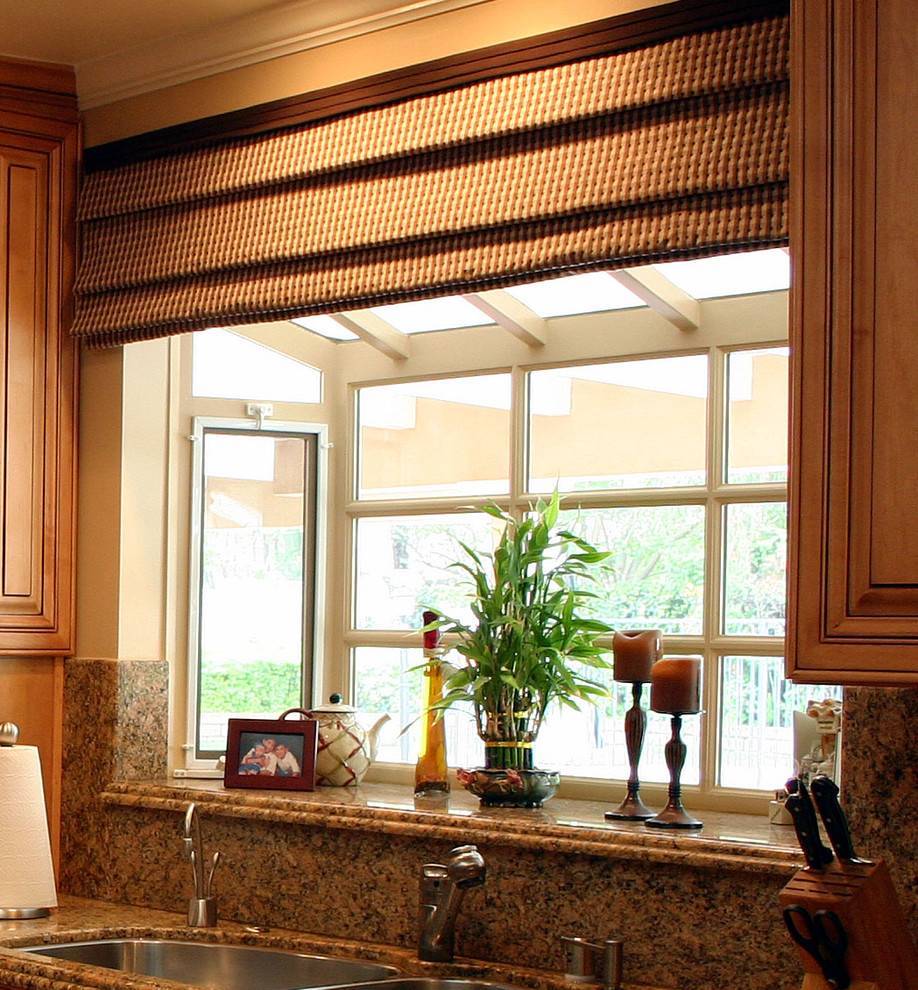 - Шторы и жалюзи надо подобрать так, чтобы они органично вписались в дизайн кухонного пространства.
