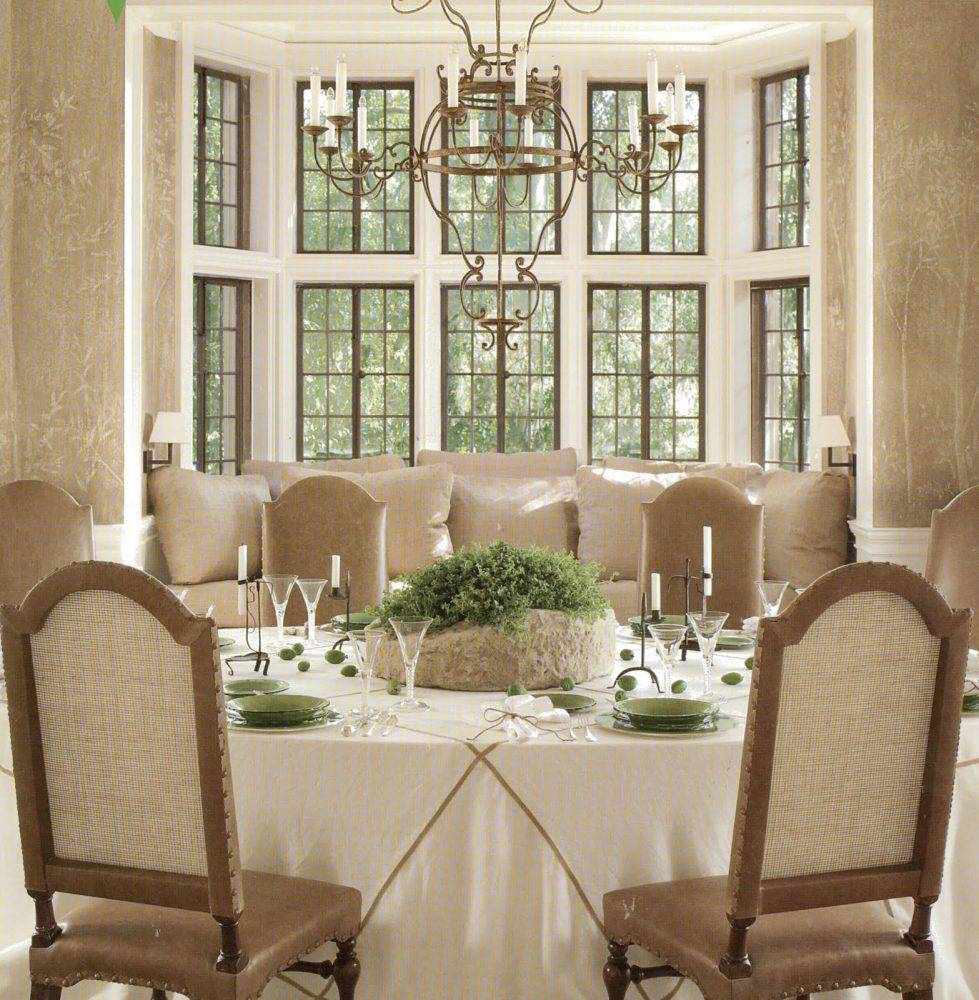 Круглый стол в кухне с эркером