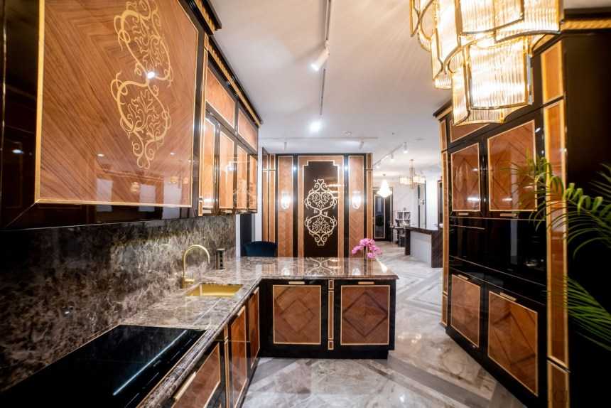 - Чтобы кухня стала образцом роскоши, необходимо забыть об экономии. Этот оригинальный стиль подразумевает выставление дорогостоящих предметов интерьера напоказ.