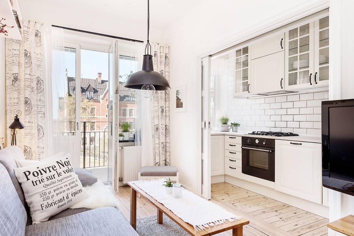 Но приведенные в качестве примеров фотографии показывают, что при грамотном подходе можно даже из маленького пространства можно сделать роскошные апартаменты, где кухня объединена с гостиной.