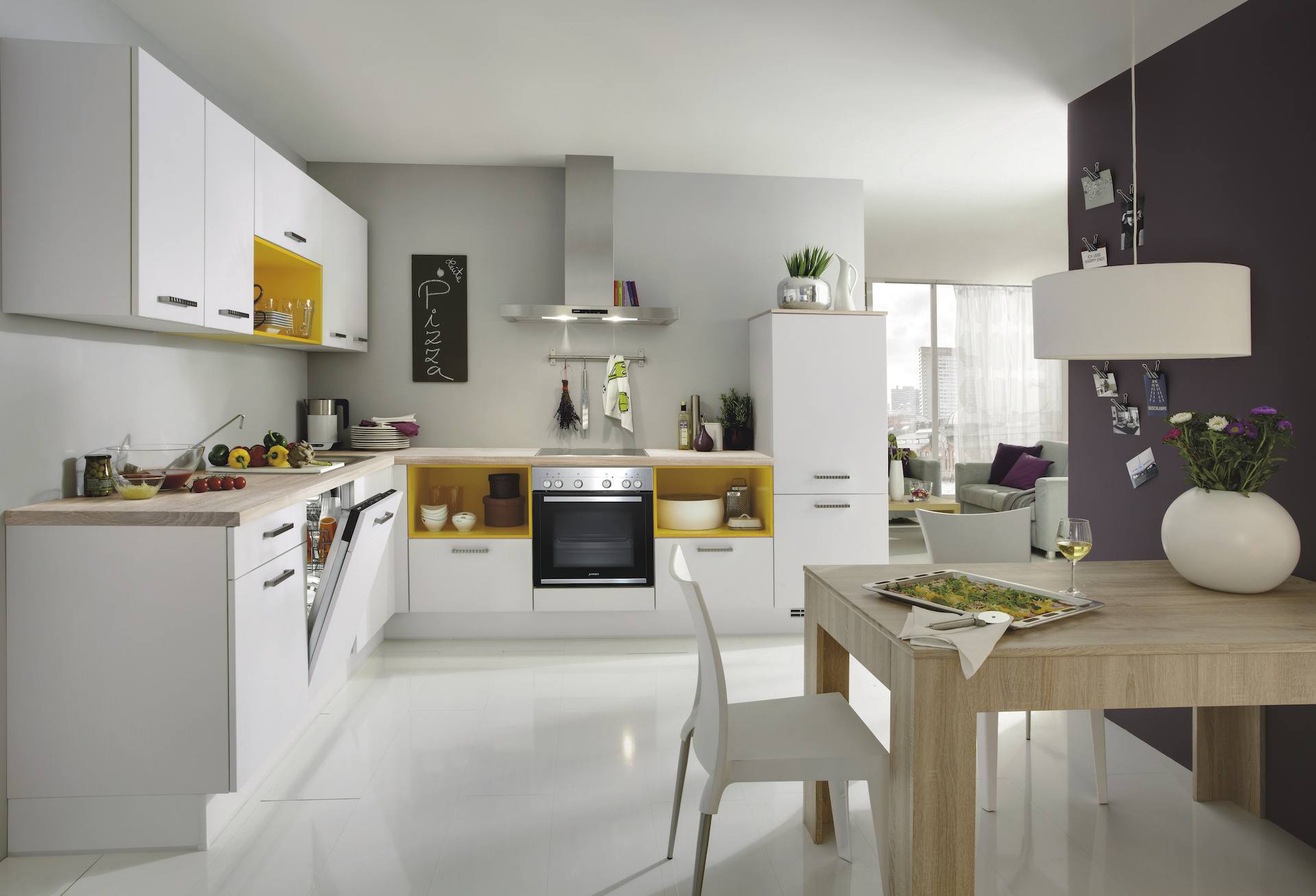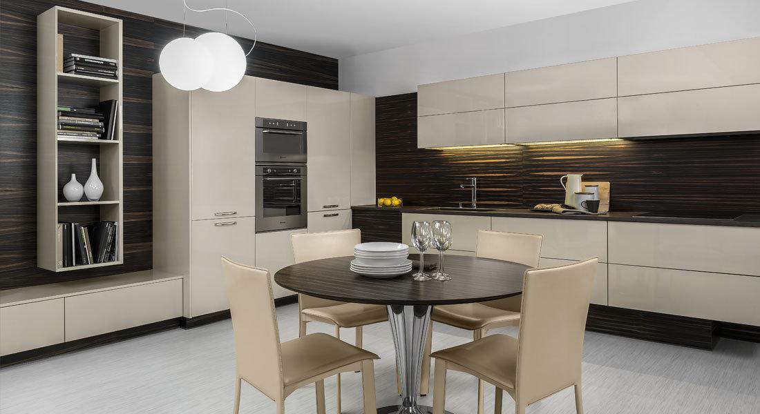 Белая лакированная кухня с деревянной столешницей? Способ отделки кухонных фасадов должен зависеть от индивидуальных предпочтений инвестора. При выборе между матовым и глянцевым покрытием также стоит обратить внимание на практический аспект — отпечатки пальцев легче оставить на блестящих поверхностях