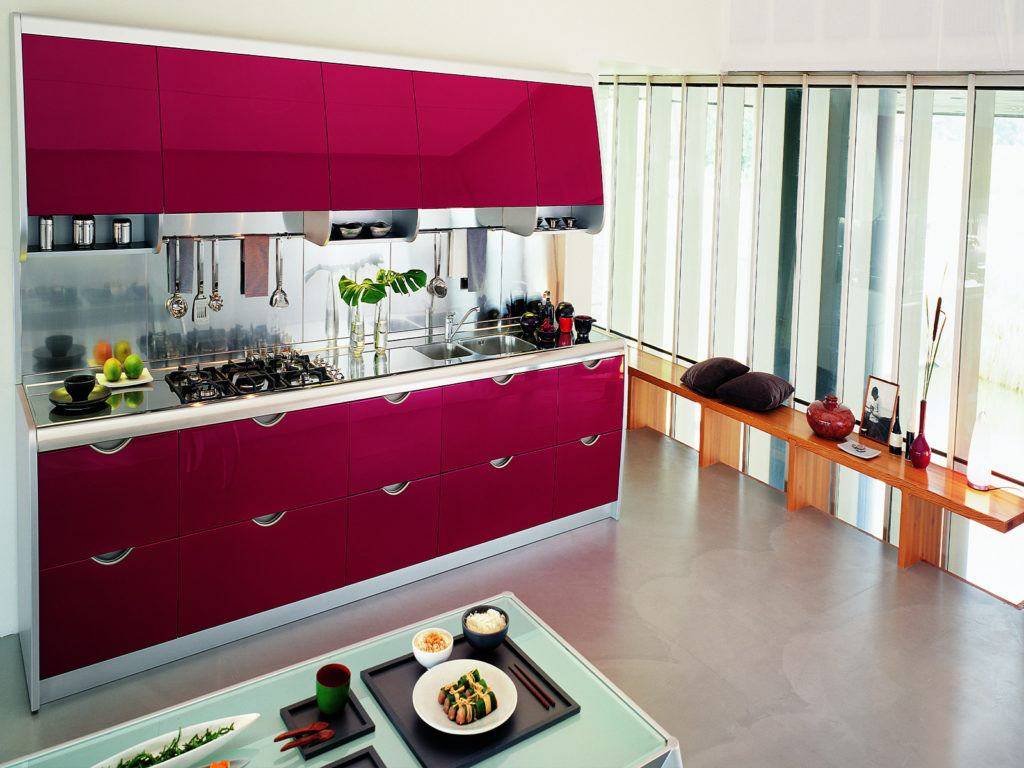 - Неординарные личности часто выбирают красную цветовую гамму. Насыщенный красный — цвет деятеля. На такой кухне хочется творить и создавать новые кулинарные шедевры и экспериментировать. Выбирайте ярко-красный цвет только в том случае, если кухня большая и просторная, иначе она будет казаться меньше, чем есть на самом деле. Если площадь мала, но вы мечтаете о кухне в красных оттенках? Используйте более приглушенные, светлые оттенки красного, это визуально расширит пространство.