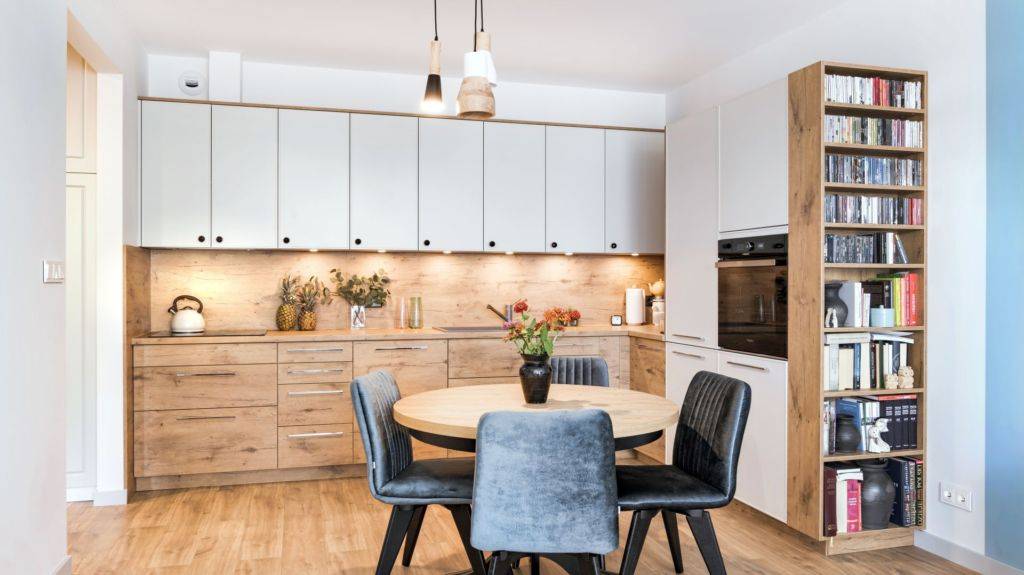 Белая кухня с деревянной столешницей — к какому стилю она подходит?