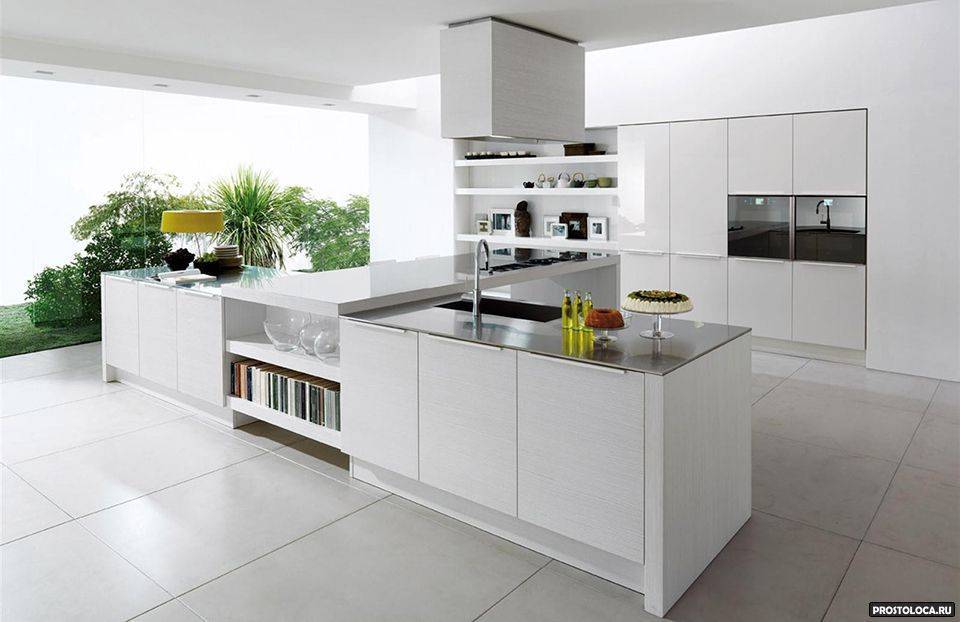 За белой глянцевой кухней с деревянной столешницей будет сложнее ухаживать — вам нужно регулярно протирать ее, чтобы она оставалась идеально чистой. С другой стороны, глянцевые фасады выглядят очень эффектно и вписываются в интерьер, выдержанный в стиле минимализма.