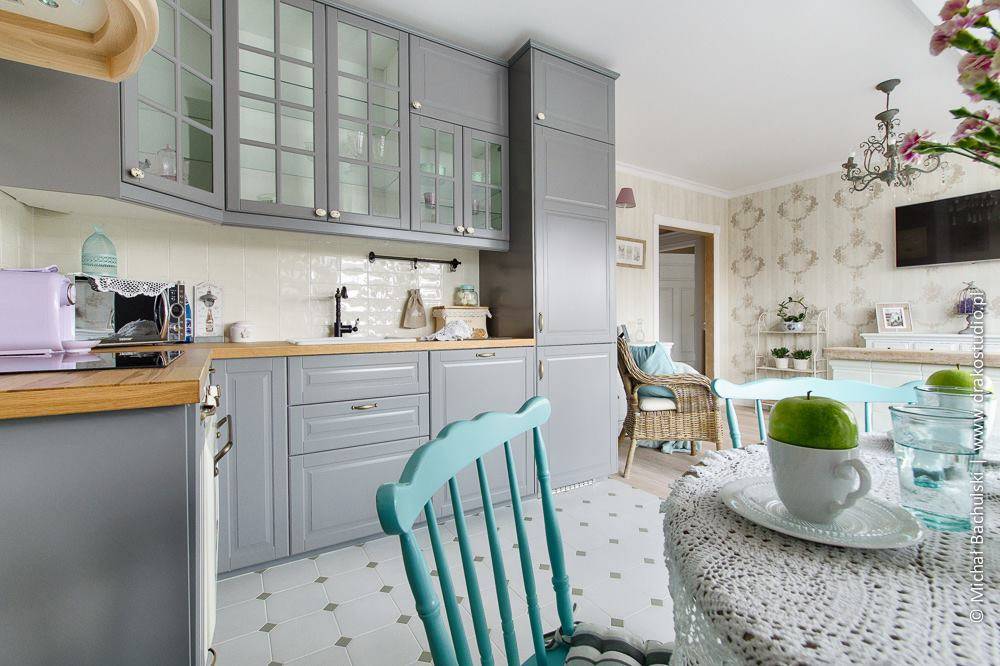 Это направление дизайна приветствует использование для декора помещения только натуральные материалы и естественные оттенки. Здесь можно встретить выкрашенную в пастельные тона мебель из натурального дерева, занавески, скатерти, полотенца из хлопка или льна, глиняную или керамическую посуду, пучки сушеной зелени на стенах.
