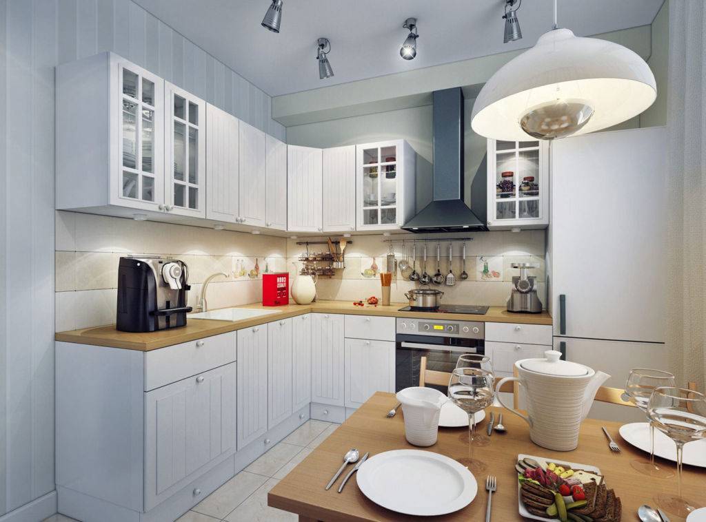 Если однотонная отделка маленькой кухни вам показалась скучной, просто учитывайте цветовые акценты — плинтуса, контрастные полосы обоев или купите материал с интересной фактурной поверхностью. Гарантируем, что в таком интерьере вам не будет скучно!