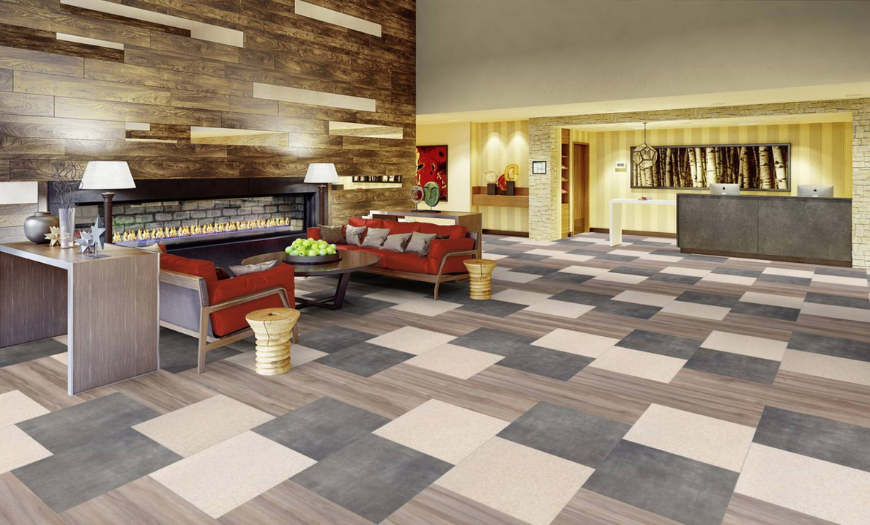 - способность покрывать большие площади. За счёт минимального показателя температурного расширения и сжатия позволяется положить кварц винил на квадратуре до 400 м2 без компенсирующих швов;