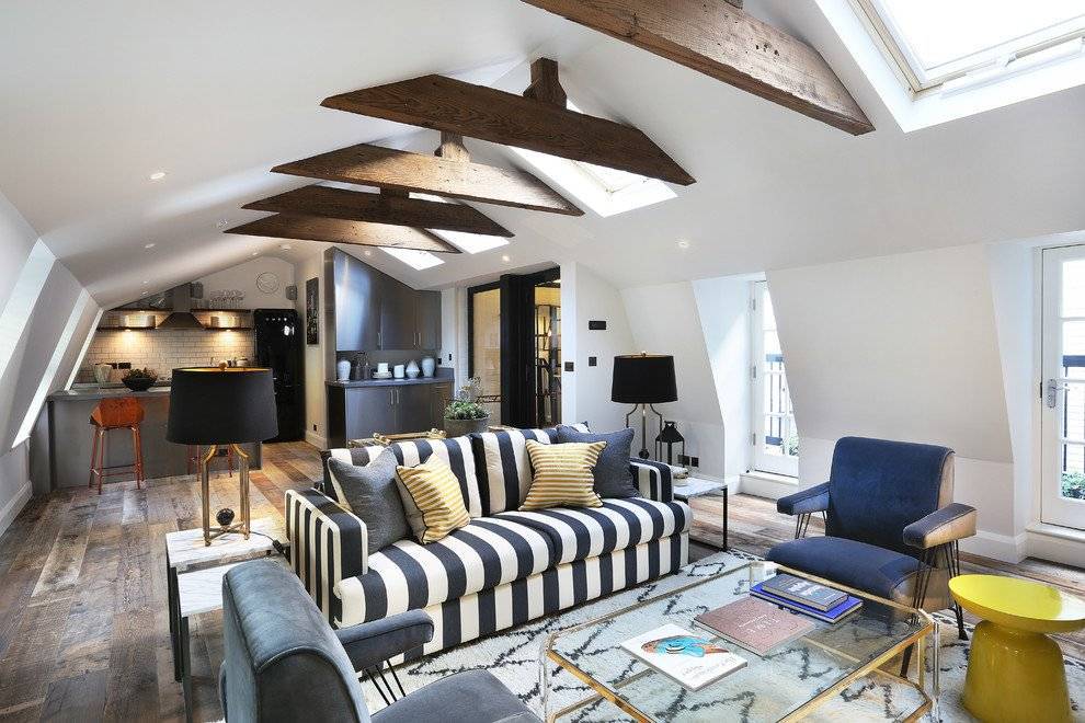 Если площадь позволяет, можно сделать отдельную комнату на чердаке под крышей или оформить квартиру-студию. Разместите в мансарде гостиную, спальню или игровую комнату, санузел, мастерскую или гардеробную, кабинет. У каждого из этих вариантов есть свои преимущества и недостатки: