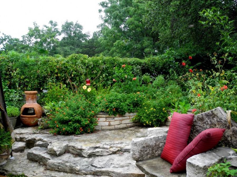 Там, где нельзя четко отделить зону отдыха от сада, можно поставить скамейку или минибеседку в тени деревьев. Вход в дом украсить плетущейся виноградной лозой, а постоянно функционирующий фонтан совместить с оросителем газона. Продуманные идеи для ландшафтного дизайна дачного участка способны визуально расширить пространство в несколько раз, и вызвать искреннее восхищение окружающих.
