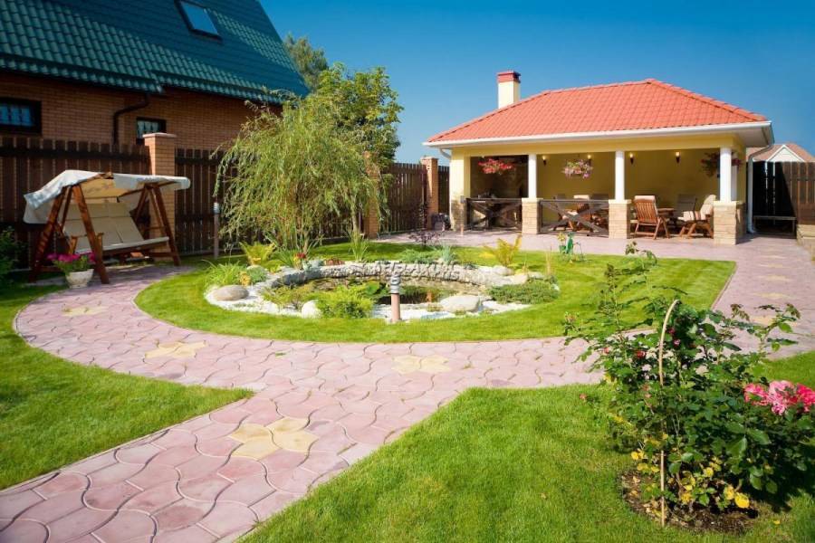 Здания, которые уже присутствуют на участке. Дом – центральное строение, от его месторасположения отталкиваются, когда планируют размещение зоны отдыха.