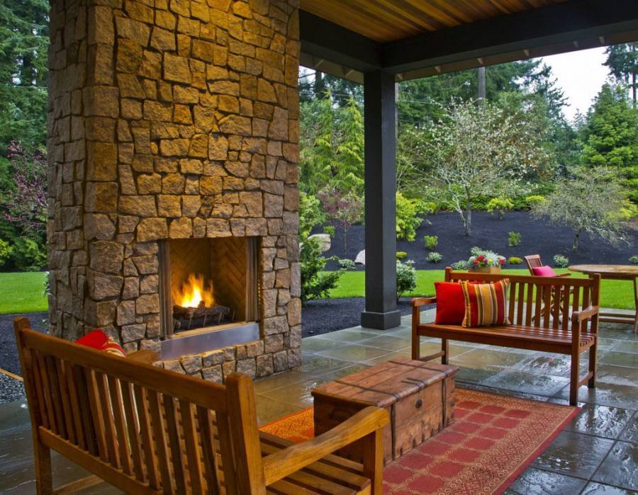 Открытый очаг в центре или мангал станут не просто местом приготовления пищи, но и украшением площадки, навевающим романтические мысли. Сегодня в продаже можно встретить разнообразные варианты мангалов, барбекю, которые можно подобрать под стиль ландшафтного дизайна.