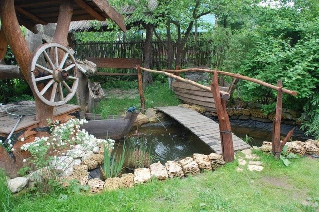 Зеркальное отражение. Использование водной глади на участке возле дачи способно визуально расширить пространство и отвлечь гуляющего от границ территории. Небольшой перекинутый через пруд мостик создаст дополнительное пешеходное пространство и увеличит площадь для отдыха