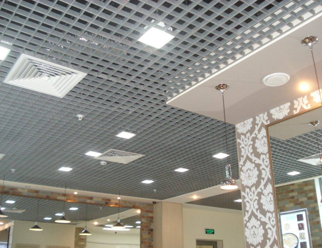 - Решетчатая структура «Грильято» улучшает вентиляцию помещения, что особенно актуально для пространства, часто посещаемого людьми. Подобное преимущество окажется очень ценным, если в помещении произойдет возгорание: конструкция потолка позволяет дыму быстро «удаляться».