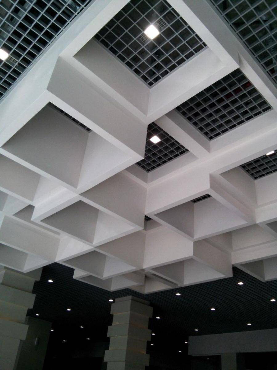 Использование потолков системы Грильято в общественных зонах обусловлено как эстетическими причинами, так и вопросами безопасности. Конструкция потолка способствует быстрому дымоудалению.