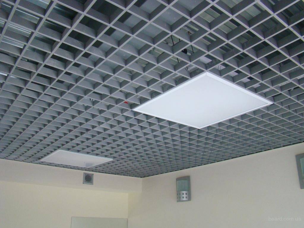 Помимо них применяют другие светильники, которые крепят в ячейки решетки.